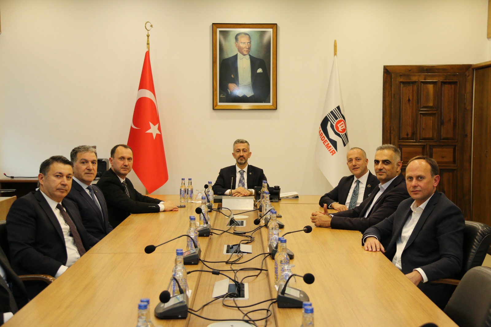 “Karabük Ticaret ve Sanayi Odası Yönetim Kurulu olarak, Karabük Demir ve Çelik Fabrikaları (KARDEMİR) Yönetim Kurulu Başkanı Muhammed Ali Oflaz Bey’e ziyarette bulunduk. Ziyarette, paydaşların ve sektörün sorunları, önümüzdeki süreçte birlikte yürütülebilecek projeler ve bölge ekonomisinin gelişimine yönelik ortak hedefleri ele aldık. Ülkemiz, bölgemiz ve şehrimiz için çok önemli olan, gözbebeğimiz, KARDEMİR A.Ş. ’nin, Yönetim Kurulu Başkanı Muhammed Ali Oflaz’a yeni görevinin hayırlı olmasını diliyor, başarı dileklerimizi bir kez daha yineliyoruz.