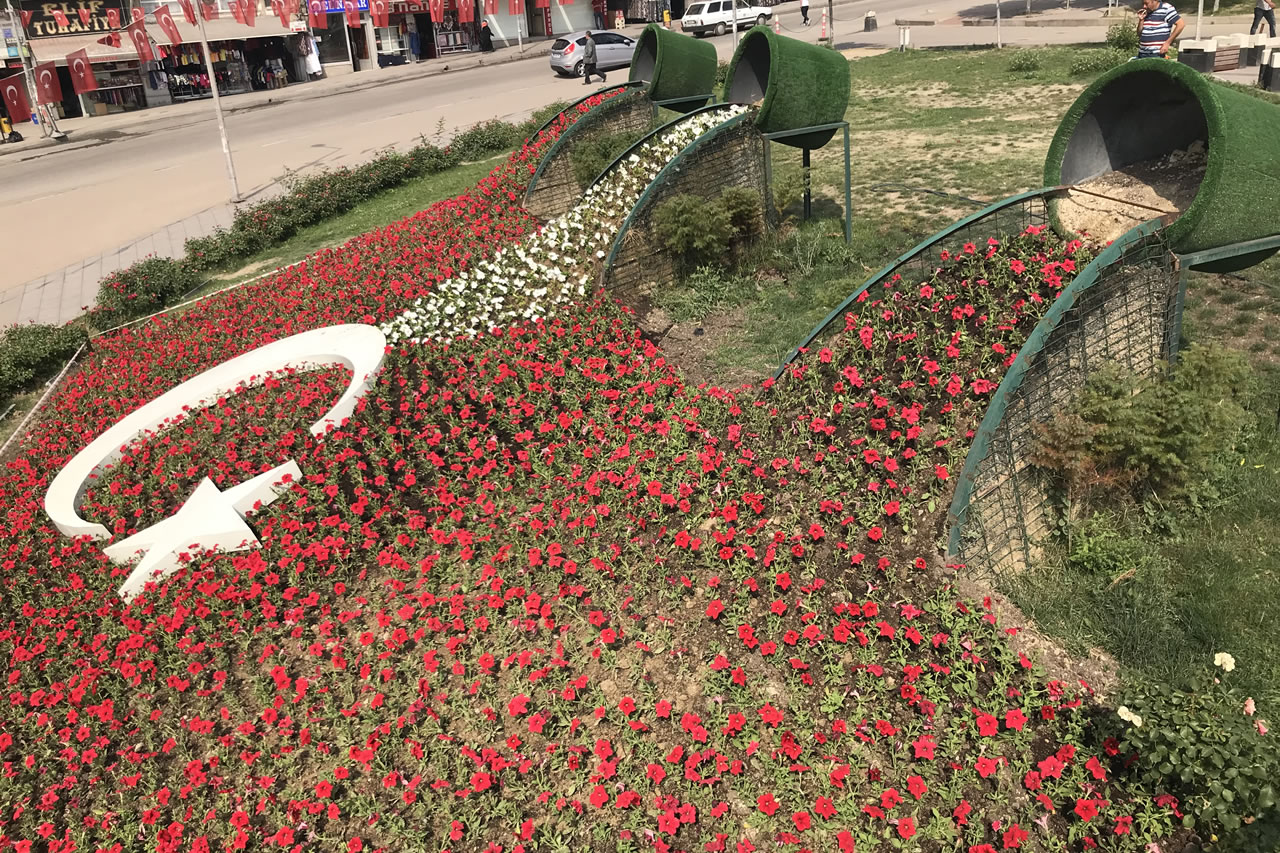 Karabük Belediyesi´nin Kent Meydanına yaptığı Türk Bayrağı temalı çiçeklendirme çalışması vatandaştan büyük takdir toplayarak, Kent Meydanı’na ayrı bir renk kattı.