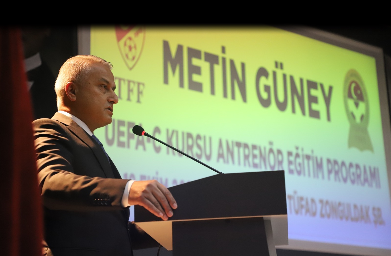 Türkiye Futbol Antrenörleri Derneği (TÜFAD) Zonguldak Şubesi, TÜFAD Karabük Temsilciliği ve Türkiye Futbol Federasyonu (TFF) iş birliğinde düzenlenen Metin Güney UEFA C Lisans Antrenör Eğitim Programı, GSB Yenişehir Spor Kompleksi Konferans Salonu’nda başladı. Programın açılışına Gençlik ve Spor İl Müdürü Coşkun Güven, TÜFAD Zonguldak Şube Başkanı Ahmet Birdal, TÜFAD Karabük Temsilcisi Kamil Emanet, TFF Eğitimcileri Muammer Birdal ve Öznur Özdem ile birlikte Gençlik ve Spor İl Müdürlüğü hizmet müdürleri katıldı.